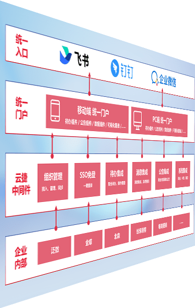 对协作平台提供支持服务,,,,支持企业应用与协作平台对接,,,包含组织同步、、消息集成、、待办集成等。。。。支持目前主流的协作平台:钉钉、、企微和飞书。。。。